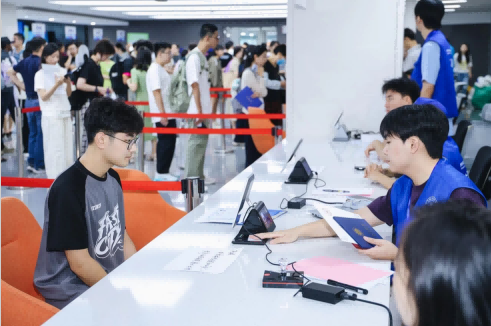 本次迎新以“安全、温馨、细致、有序”为原则,全面贯彻“以学生为中心”的服务理念,推出多项暖心举措:在各大火车站设立接站点,为新生提供便捷到校服务;组织志愿者团队提供一对一咨询引导和行李搬运服务;为报到当日过生日的新生送上专属生日餐券,传递温暖祝福;迎新现场集成学费缴纳、绿色通道、户口迁移、校园服务、银行卡办理等一站式服务窗口,大幅提升办理效率;通过科学规划入校路线与报到流程,全力保障迎新期间的安全与秩序。