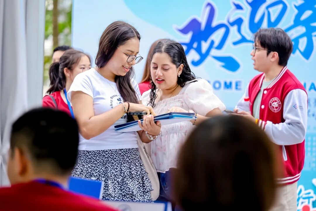 各学院结合自身特色,精心设计了丰富多样的迎新活动。新生们和学院吉祥物一起, 在具有学院特色的展板前签字留影,定格灿烂的笑容,领取特色的迎新礼物。
